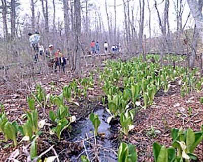 冬の長い遠野の山間に、遅い春を告げる白い妖精ミズバショウは、毎年4月中旬から下旬にかけて可憐な花を見せてくれます。