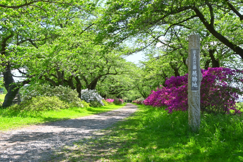 - みちのく三大桜名所に数えられる北上展勝地は、北上川岸辺の市立公園で県下一の桜の名所として知られており、川沿いに続く約2kmの桜並木は見事です。