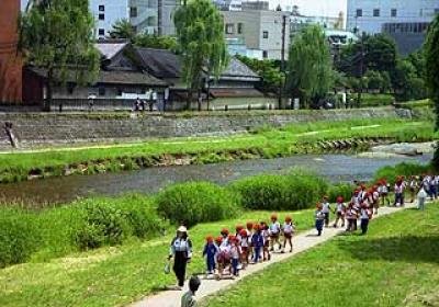 市内の中央を東西に流れる。上の橋、下の橋には擬宝珠がつけられ、落ちついた風景をみせている。秋から初冬にかけては、鮭の遡上がみられる。