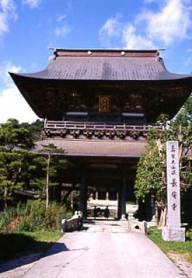 日頃市町に約900年前に建立された浄土真宗大谷派の寺院。東北有数の名刹で京都東本願寺の末寺です。当時の建物は火災で焼失し、現在のものは後に再建された建物です。その中でも山門は高さおよそ20mの総ケヤキ造り、太鼓堂は約270年前、桃山建築の様式を取り入れて建てられています。