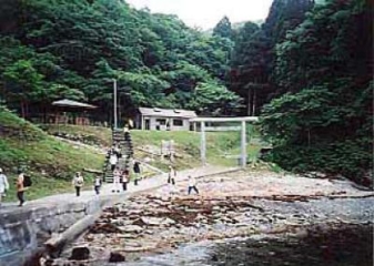 平泉を脱出した義経主従が、鶏住居川に沿ってこの宝浜で休息したといわれています。法冠神社は、この地の先祖が建立したもので義経をまつり「法冠大神」と号しました。明治20年に神社は焼失し、現在は石の祠が建っています。