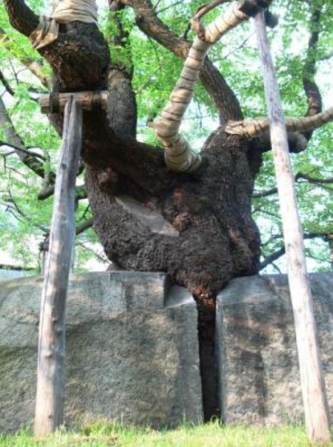 盛岡市の盛岡地方裁判所の前庭にある周囲21mの花崗岩の割れ目から見事な枝をのばすエドヒガンは樹齢が360年以上ともいわれ、国の天然記念物に指定されています。