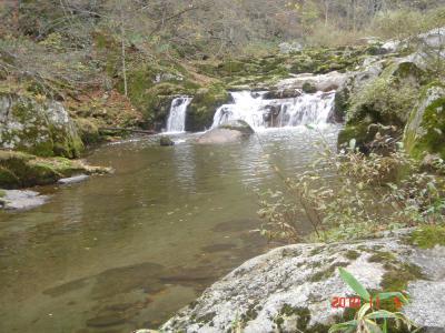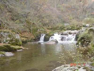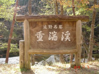 猿ヶ石川上流にある渓谷。巨大な花崗岩が階段状に侵食され畳を何枚も敷いたように対岸近くまで連なっている間を、清らかな水が滝を作って流れており、紅葉の名所として知られています。
