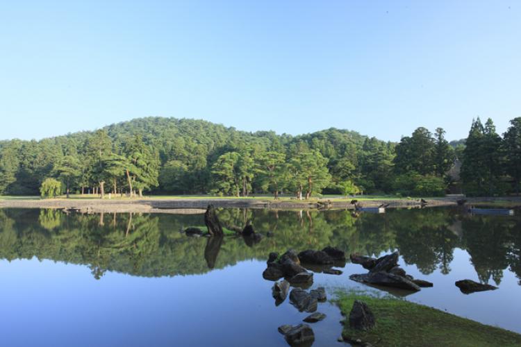天台宗別格本山・毛越寺は山号を医王山といい、慈覚大師によって嘉祥3年(850)に開かれました。 平安時代後期に奥州藤原氏二代基衡公と三代秀衡公が金堂円隆寺、嘉祥寺など壮大な伽藍(がらん)を造営し、その規模は堂塔四十、僧坊五百を数え、わが国無二の霊地と称されました。 その後度重なる災禍に当時の伽藍は惜しくも焼失しましたが、現在大泉が池を中心とする「浄土庭園」と平安時代の伽藍遺構がほぼ完全な状態で保存されており、国より特別史跡、特別名勝の二重指定を受けています。