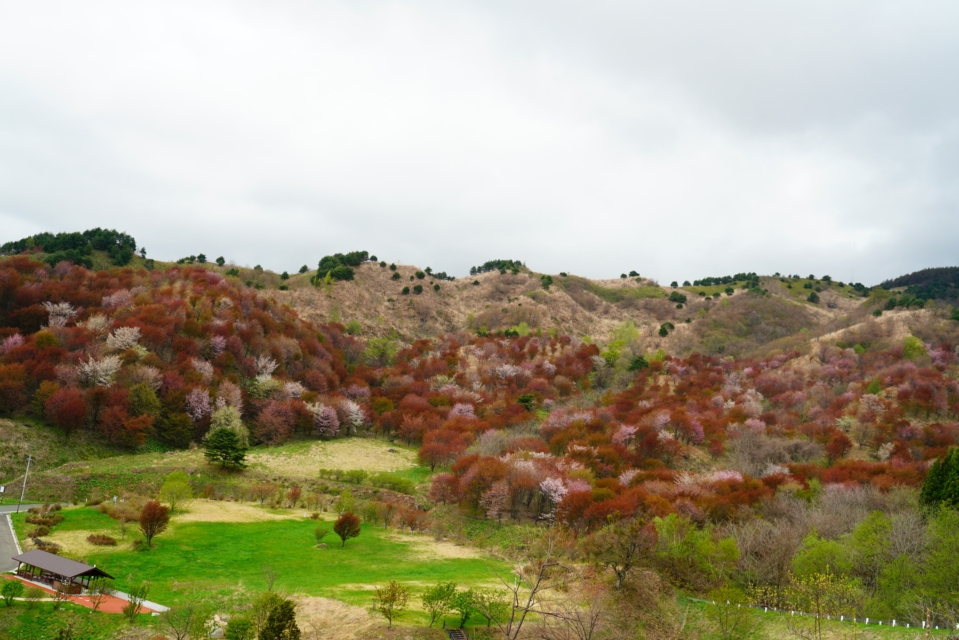 平成10年・11年に日本一の桜の名所を作ろうと、約37ヘクタールに1万本のオオヤマザクラを植樹。他にも約120本のソメイヨシノやシダレザクラもあり、展望台からは雄大な岩手山を一望できる。