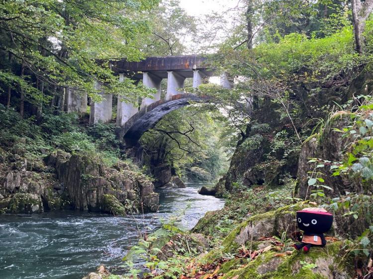 住田町を流れる気仙川に架かる葉山めがね橋は、昭和6年に架けられたアーチ型のコンクリート橋です。義経北行ルートにあたり、「弁慶の足跡」や「半官手掛けの松」などの伝説が残されています。周囲は葉山めがね橋水公園として、自然鑑賞ができるよう整備されています。