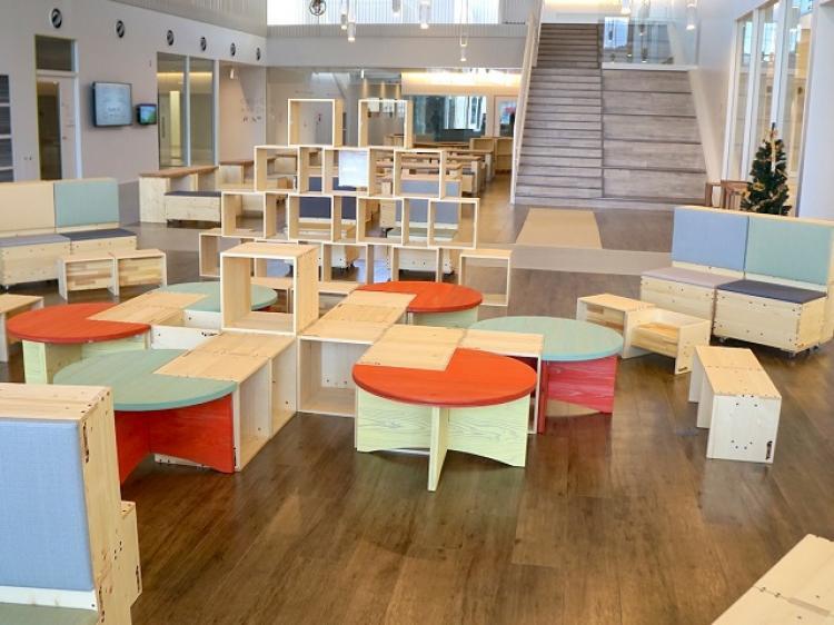 ビッグルーフ滝沢は、コミュニティーセンター、図書館、アンテナショップ・レストランで構成されており、どの年代の方が訪れてもわくわくできる複合施設です。屋上は岩手山を見晴らす眺めの良いテラスもあり、開放的なスペースとなっています。
