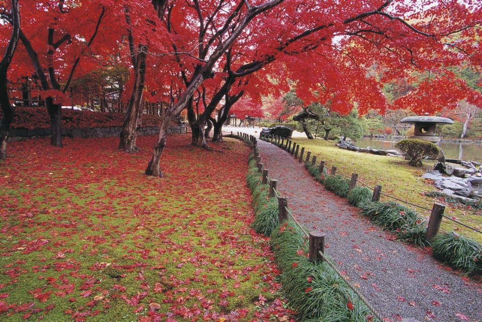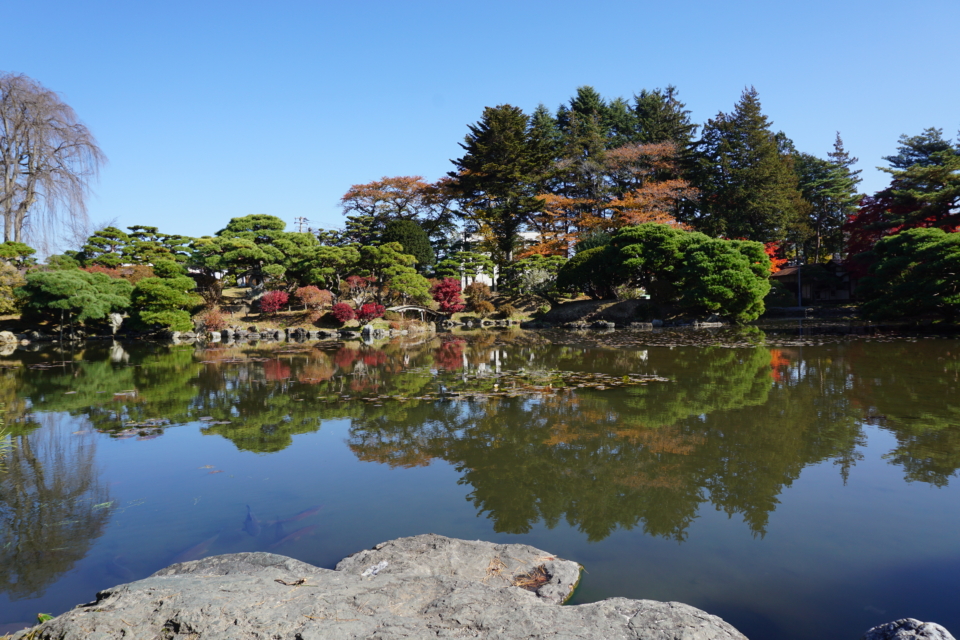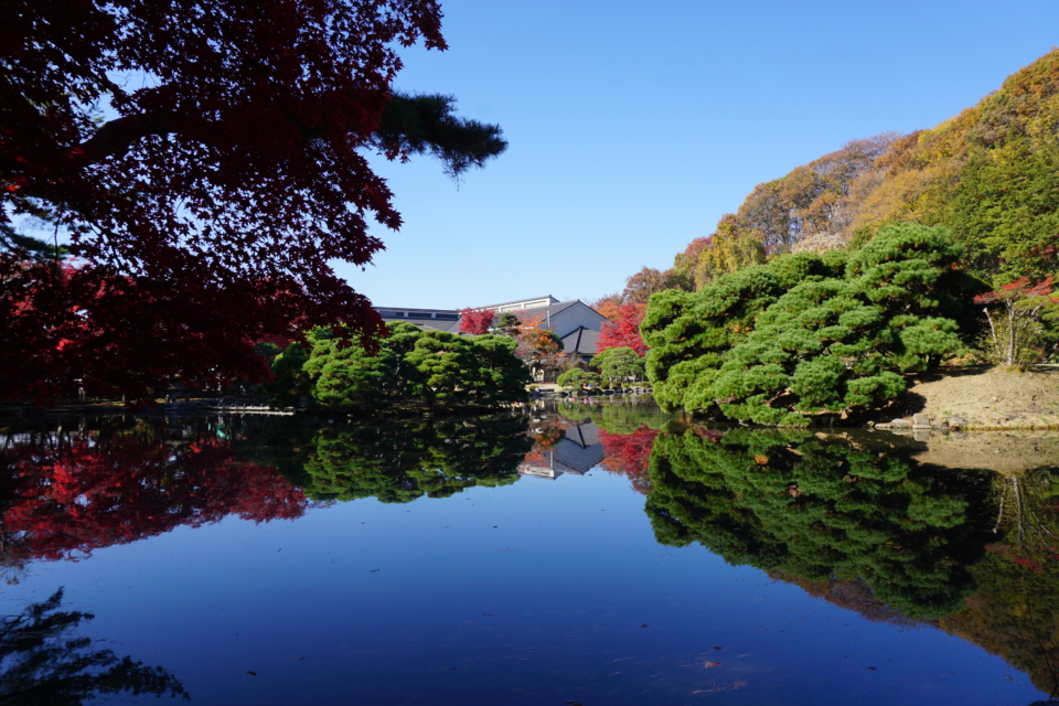 - 南部家の別邸で回遊式庭園があり、池に映える紅葉が見事です。