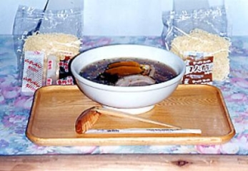 新里地域産のかぼちゃを粉末にして生地に練りこんであるため、黄色い麺が特徴のかぼちゃラーメン。βカロチンも豊富です。柔らかいのにコシがあると「新里ふるさと物産センター」内にある食堂でも大好評。物産センターではたれとセットでバラ売りもしていますので、ご家庭でもそのおいしさが味わえます。