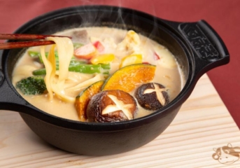 葛巻町産の肉や野菜、乳製品、赤ワインなど豊富な特産品を活かし、町内産平打ち麺「ひぼがはっと」を入れた一人前の鍋です。 町内飲食店の各シェフが工夫を凝らし、冬はあたたかい鍋、夏は冷やし鍋を南部鉄器の鍋に入れて提供します。 葛巻町内の各飲食店でそれぞれのオリジナル鍋をお楽しみいただけます。 ※冷やし鍋はひぼがはっとを使用していません