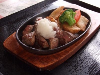 小形牧場直営レストラン。お肉は例年多くの賞をいただいている小形牧場生産「小形牧場牛」をはじめ、厳選された「前沢牛」を取り揃えている。焼き肉・すき焼き・しゃぶしゃぶ・ステーキと、色々なお料理で楽しめる。