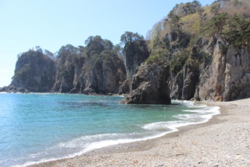 田老湾の北に突き出た岬で、明神崎から本州最東端のとどヶ崎まで一望できます。 2019年海水浴場として再開しました。