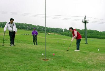 緑の芝の上を専用のクラブとボールを使ってまわります。コースは4コース、36ホール。ゴルフ未経験者でも気軽にプレイできます。