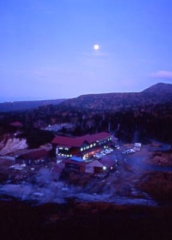 標高1,400m、東日本で最も高いところにある温泉。春は春スキー、秋には蓬莱境を訪れる人々の基地となっている。