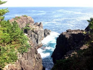 リアス海岸の典型的な光景が広がります。岩の一部が陥没して切り立った崖と崖の間に狭い水路ができ、太平洋の荒波が打ち寄せ侵食しています。長い年月をかけて波が地形を変えていくのです。自然の造形の一瞬を垣間見ることができます。付近の園地は椿の隠れた名所となっています。