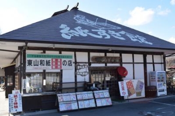 800年の伝統を受け継ぎ生産されている手すきの「東山和紙」を展示・販売。人形や小物などのほか、ちぎり絵や押し花用和紙など、和紙に関するものを多数販売。 また、簡単な紙すき体験ができます。所要時間は15~30分。好みの色や木の葉をのせた自分だけの和紙が作れます。【料金】1人1,000円、2人で1,500円、3人以上1人700円(別途送料がかかります。)