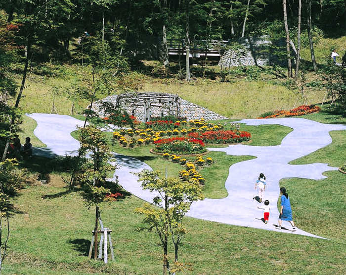 將車停在伊哈托萬的停車場,從那裡步行到宮澤健二紀念館,這是一個花壇,裡面有一個由健二設計的南斜花壇。 即使在下雨天,打著傘散步也是美妙的。