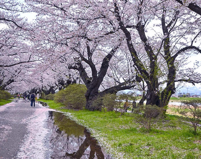 ――櫻花倒映在下雨時形成的水坑中,您可以遇到陽光明媚的日子里看不到的特殊風景。
