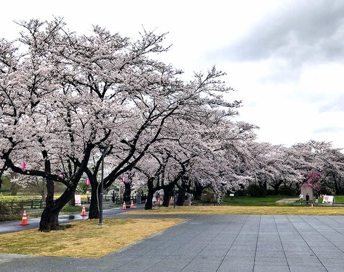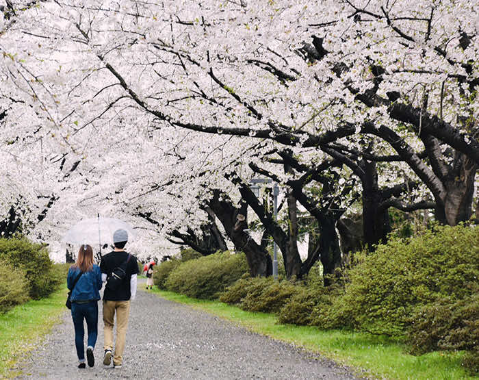 ――走在2公里長的一排櫻花樹周圍,濕漉漉的,被雨水打濕,空氣清新,感覺很好。