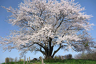 從松尾八幡平IC開車約3分鐘的一個小山丘上,在一個名為“大內的井物櫻花”的小山上盛開。 當曾經在這個地方的神社搬遷時,這棵僅存的櫻花樹每年都盛開,令人賞心悅目。