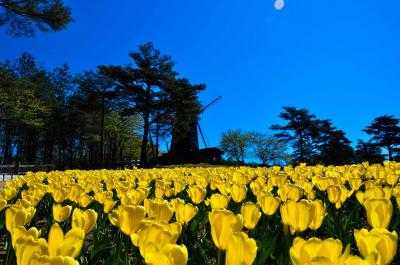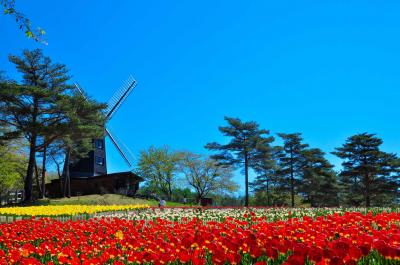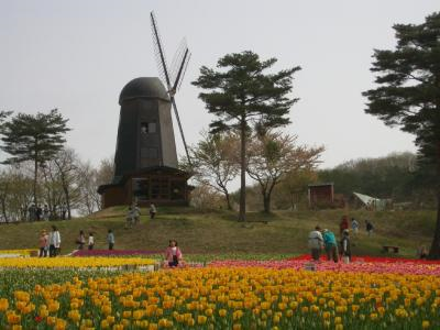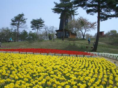 從 4 月下旬到 5 月中旬,30 個品種的約 150,000 株鬱金香在五顏六色的鬱金香花園中盛開。