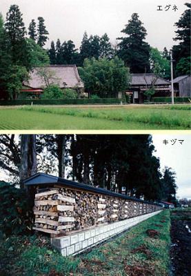 Egne 是雪國不可或缺的豪宅森林。 府邸北側和西側種植的樹木起著防風防雪的重要作用。 Kizuma 是通過堆積木柴形成柵欄製成的,據說在過去,人們根據木柴的數量和長度來爭奪豐富。 兩者都可以說象徵著主要在水稻種植中蓬勃發展的雪瘿。