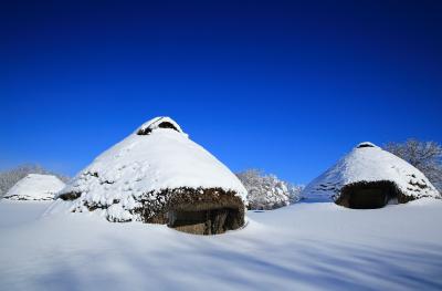 這是繩文時代定居點的遺跡,在昭和26年(1951年)的發掘中發現了約30塊石頭排列的遺跡。 硬洞住宅已經修復並在戶外展出。